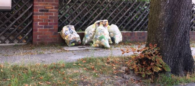 Immer wieder erreichen mich Beschwerden, dass am Entsorgungstag Verunreinigungen auf der Straße durch das Aufreißen der „Gelben Säcke“ entstehen. Zumeist sind es Raben und andere Vögel, die die Gelben Säcke als Futterquelle entdecken und dann die Gegenstände über die Straße verteilen.