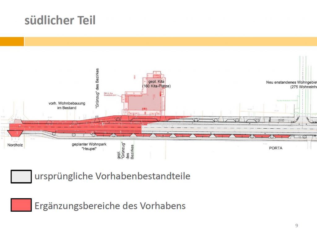 Die neuen Finanzierungsmittel (Beschluss SIWANA-Lenkungsgremium und Hauptausschussbefassung), um die Baumaßnahme der Straße auch vor dem Kita-Standort zu ermöglichen, wurden am 24. Mai 2018 bewilligt.