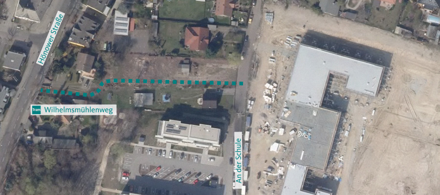 Mit der nun im Bau befindlichen Wegverbindung wird der Schulstandort besser an die Tram angebunden und es wird ein Zugang von der Hönower Straße zur Straße An der Schule geschaffen.