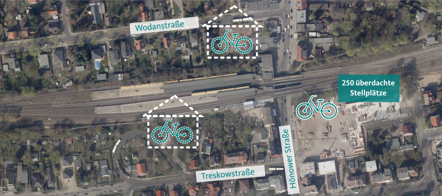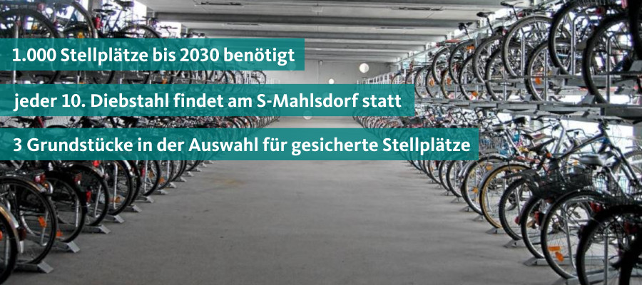 Eine Standort- und Potenzialanalyse für den Bahnhof Mahlsdorf ist abgeschlossen. Hierbei wird ein Bedarf von 1.000 Stellplätzen bis zum Jahr 2030 prognostiziert.