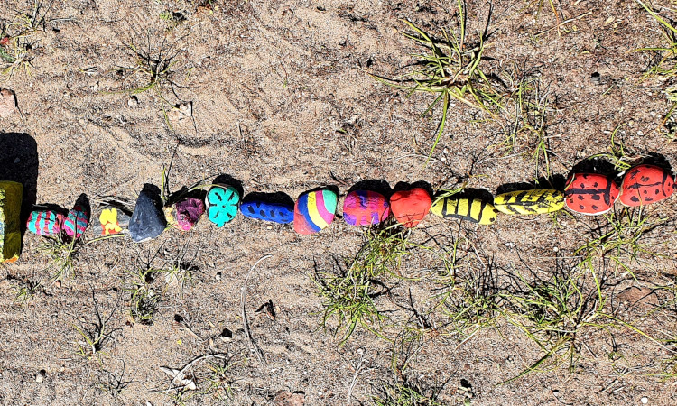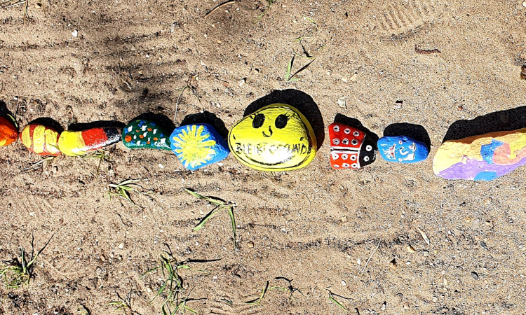 Jeder kann mitmachen, einen Stein bemalen und die Schlange ergänzen. In den letzten Tagen sind so bereits über 50 kunstvoll verzierte Steine zusammengekommen.