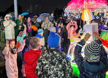Danach wollen wir um 18 Uhr zu einem Laternenumzug durch den naheliegenden Kiez starten. Begleitet von unserer kleinen Bürgerfeuerwehr, wollen wir gemeinsam mit den Kindern die bunten Laternen ausführen und dazu Laternenlieder singen.