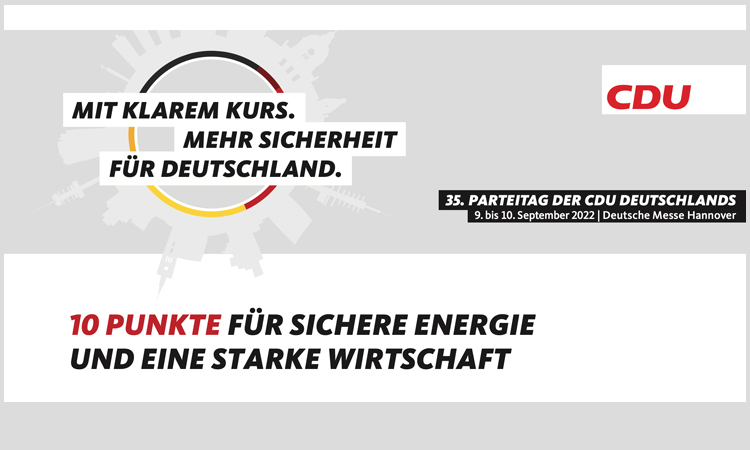 Auf unserem Parteitag haben wir als CDU einen 10-Punkte-Plan beschlossen, mit dem wir unsere Ideen für sichere Energie und eine starke Wirtschaft in Deutschland beschreiben. Denn wir sind uns sicher: Deutschland kann es besser.