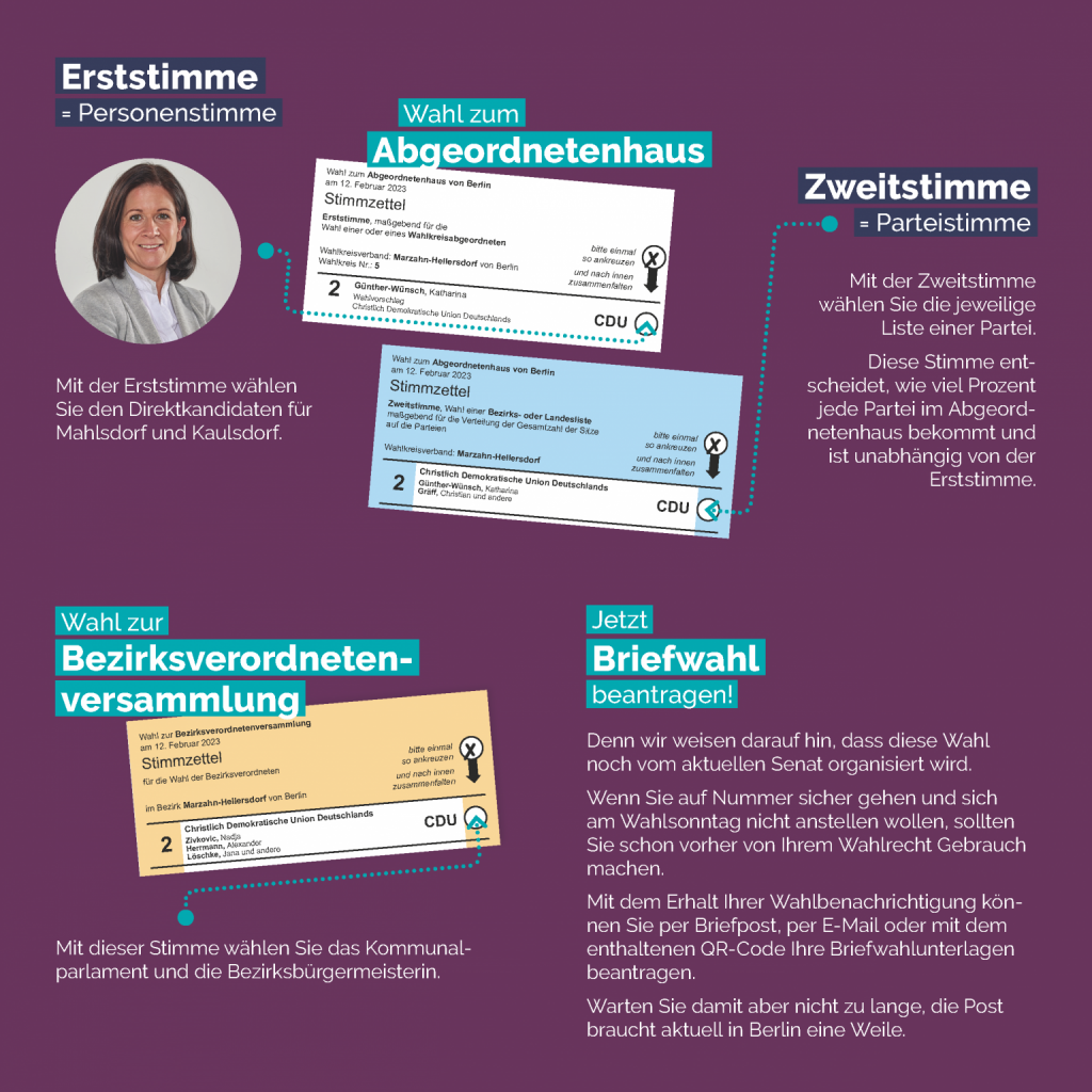 Die Wiederholungswahl zum Deutschen Bundestag betrifft auch zahlreiche Haushalte bei uns im Bezirk. Wie üblich kann auch per Briefwahl abgestimmt werden.