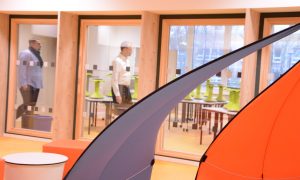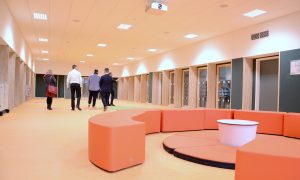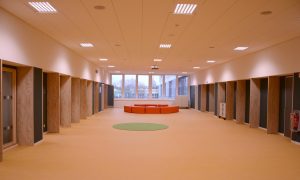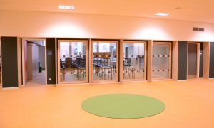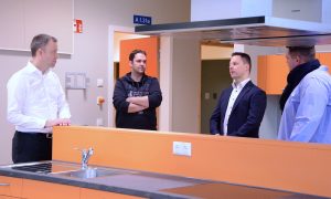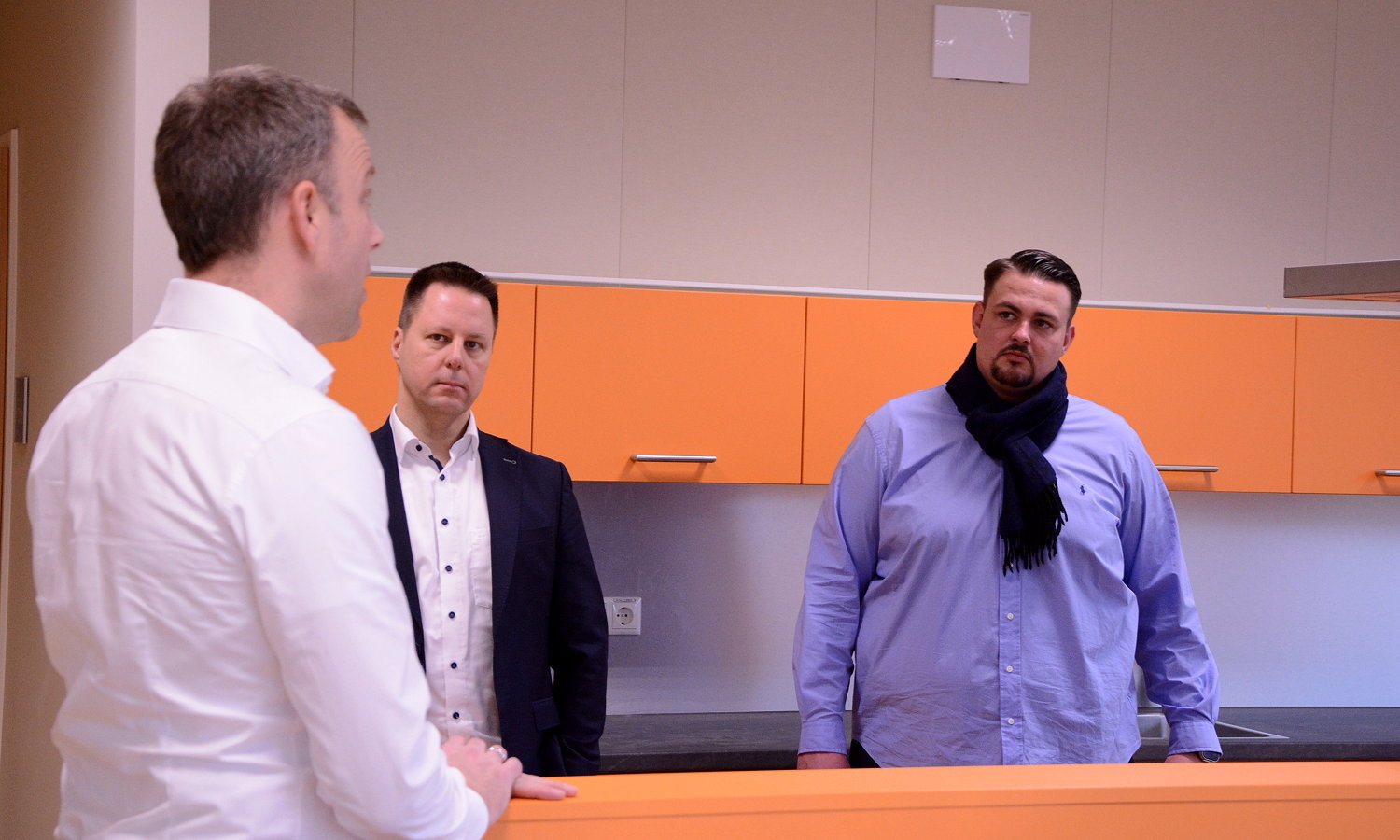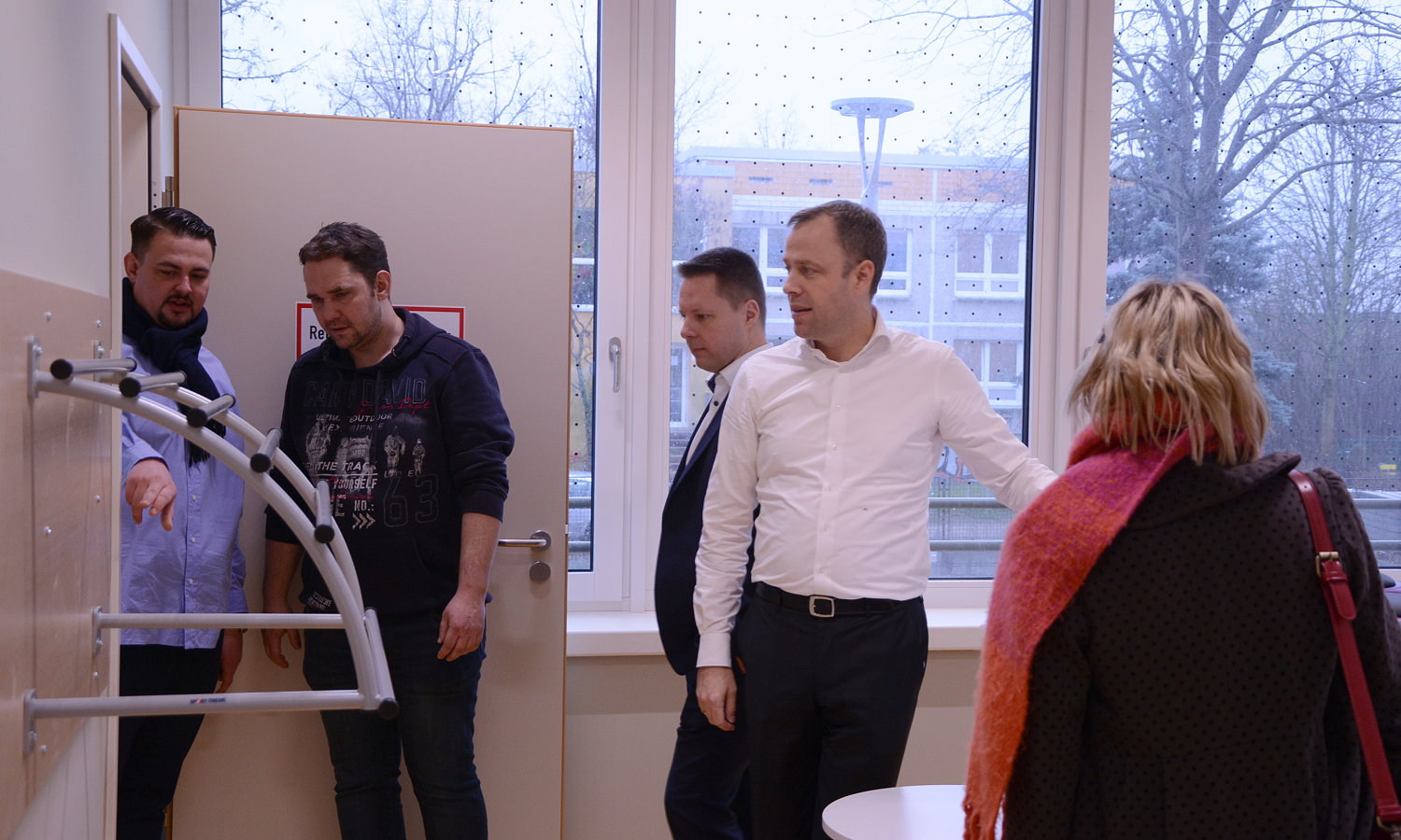 Den Belangen von Eltern und Schülern folgend, hatten uns insbesondere die sanitären Anlagen und die Küche interessiert. Aber auch die Möglichkeiten zum Gestalten der Wände und die behindertengerechten Zugänge waren sehr beeindruckend. Es verdient absolute Anerkennung, was hier in nur einem Jahr Bauzeit geschaffen wurde. 580 Schüler werden hier voraussichtlich schon nach den Osterferien einziehen. Durch die Witterungsbedingungen verzögert sich momentan die Fertigstellung der Außenanlagen inklusive Feuerwehrzufahrt. Die Kosten für diesen Schulneubau belaufen sich auf 54 Millionen Euro.