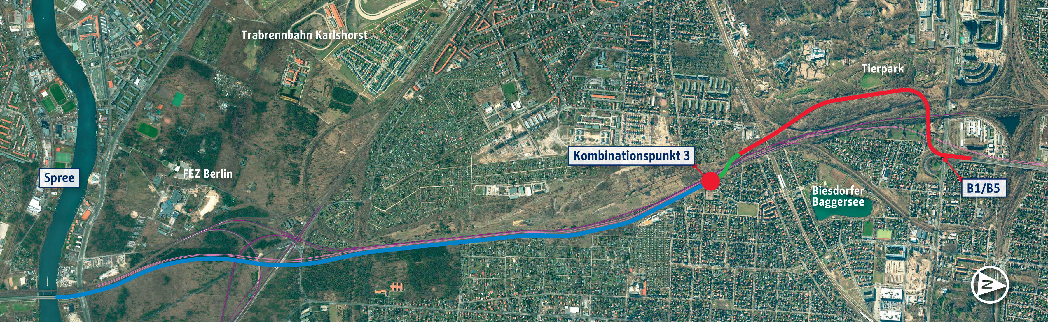 Unter Berücksichtigung der Belange des besonderen Artenschutzes ergab sich die Variante KOMBI 3 als Vorzugsvariante. Sie verschwenkt von der Ostseite zur Westseite mit einer Querung des Berliner Außenringes (DB-Ring) tendenziell im Bereich des Kombinationspunktes 3. Im Verlauf der vertiefenden Planungen und der weiteren Beteiligungsverfahren wird die punktgenaue Verortung der Querung präzisiert und optimiert.