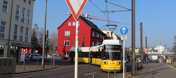 - Bei einer Straßenbahnanbindung über die Straße „An der Schule“ wäre wieder eine Zufahrt zum EDEKA-Gelände über die Hönower Straße möglich. Auch die Kreuzung B1/B5/Hönower Straße/Hultschiner Damm könnte den Verkehr mit jeweils einer weiteren Abbiegespur in die Innenstadt entzerren.