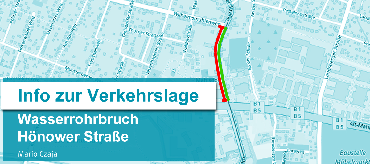 Von einigen Anwohnern erhielt ich Fragen zu der Verkehrssituation im Zusammenhang mit der Sperrung der Hönower Straße. Deshalb habe ich bei den Berliner Wasserbetrieben zum aktuellen Sachstand angefragt und erhielt schnell eine Antwort. Weil es sicher nicht nur die Anlieger interessiert, gebe ich die Informationen gerne an Sie weiter.