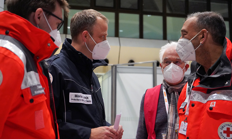 Als Präsident des DRK Berlin verschaffte ich mir einen Überblick über die Vorbereitungen für unser Ankunftszentrum im ehemaligen Flughafen Tegel.