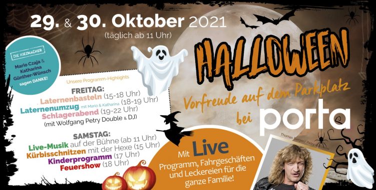 An diesem Freitag, den 29. Oktober veranstalten wir gemeinsam mit Porta eine große Halloween-Party, Laternenbasteln, Laternenumzug, Glühwein, Bratwurst und Schlagerabend.
